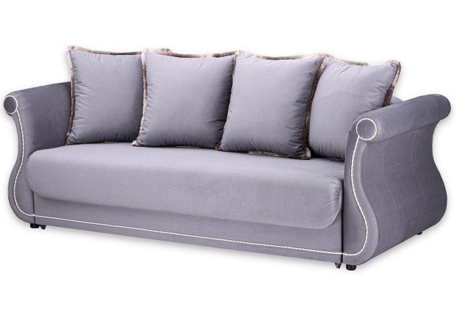 The RAMART DESIGN Durham sofa bed is the perfect combination of style and functionality. With the Eurobook transformation mechanism, it easily turns from a sofa into a comfortable sleeping place, providing convenience for both relaxation and sleep. The upholstery material is made of wear-resistant velor. The sofa offers a spacious sleeping area with a width of 140 cm. The Eurobook mechanism ensures ease of unfolding: just pull the seat loop and lower the backrest. There is a spacious storage box under the seat, making it even more practical. The seat filling includes an independent spring block “Pocket Spring”, which provides medium surface rigidity. The sofa is equipped with two armrests decorated with twisted piping, and the set includes four pillows in removable covers, which makes it easy to keep clean. The fabric on the cushions is decorated with fringe, which gives the sofa a stylish look.
