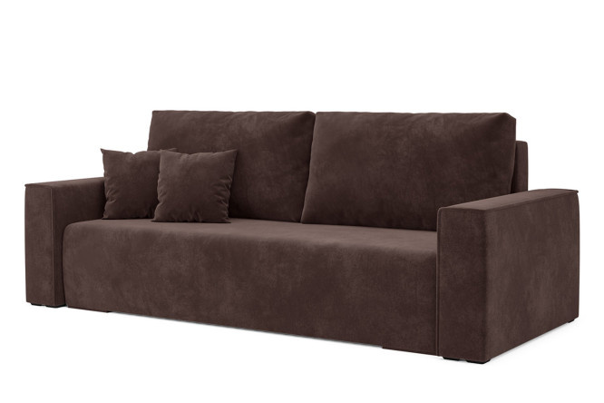 When folded, the sofa has three seats. The seat depth is adjustable using back cushions that support the spine and head in a sitting position. Additional comfort is created by decorative pillows, which can be used for your own pleasure: conveniently placed in the corners of the sofa, placed under your head, or removed altogether.