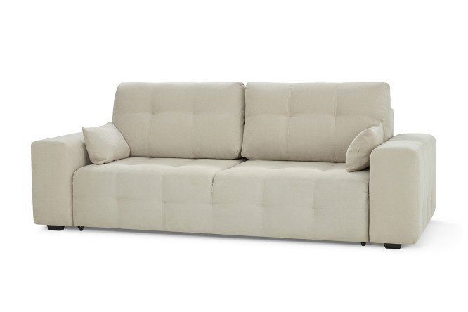 The Pittsburgh sofa bed looks modern and elegant thanks to neat geometric quilting and pike tie-downs on the back and seat cushions. The severity of the forms, which is visible in the silhouette of the sidewalls, is balanced by the softness of the velor upholstery.