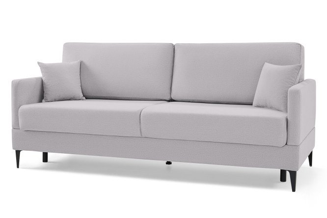 The sofa’s strict and laconic shapes are designed in the style of Scandinavian minimalism. Soft, warm to the touch upholstery fabric with a yarn texture will make it feel homey. A wide range of dusty tones will allow you to choose furniture that fits perfectly into your interior. The reliable transformation mechanism “Eurobook” will provide a flat sleeping place for two people, suitable for daily use. High metal supports with plastic bearings are stable and safe for any floor covering.