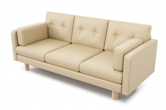 Sofa Ingvar B is an elegant and comfortable model with a modern design. Clear shapes and high solid birch legs give the model visual lightness. To decorate the back cushions, the designers used large decorative buttons in a contrasting color, making the sofa look elegant and stylish.