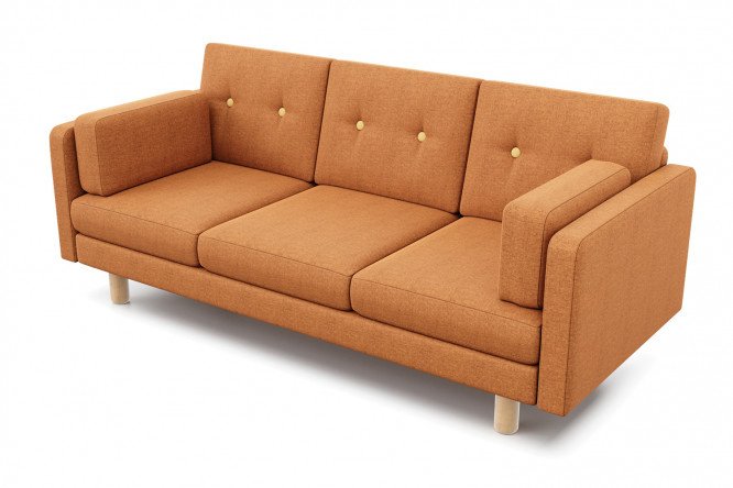 Sofa Ingvar B is an elegant and comfortable model with a modern design. Clear shapes and high solid birch legs give the model visual lightness. To decorate the back cushions, the designers used large decorative buttons in a contrasting color, making the sofa look elegant and stylish.