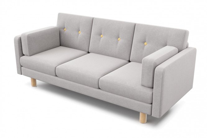 Sofa Ingvar B is an elegant and comfortable model with a modern design. Clear shapes and high solid birch legs give the model visual lightness. To decorate the back cushions, the designers used large decorative buttons in a contrasting color, making the sofa look elegant and stylish.