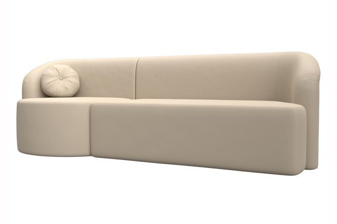Sofa League attracts attention with its unusual asymmetrical shape. The model with a comfortable seat on an independent spring block and soft velor upholstery will become a favorite resting place for all family members. This model is available only in those upholstery options that are presented in our assortment.