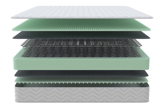 Spring mattress Hall Start with a cover made of quilted jacquard material and filled with thermal felt, polyurethane foam, Bonnel spring block.