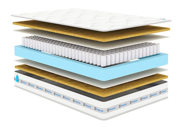 Hard mattress with a high load of up to 140 kg per bed. The double layer of sisal gives the SleepLab Technology mattress high orthopedic properties and provides reliable support to the body during sleep. The mattress is suitable for those who like to sleep on a relatively hard surface.