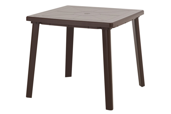 A small square table from a Russian manufacturer is perfect for relaxing in the fresh air. There is a hole for an umbrella in the center of the tabletop. The four legs are easily removable for better transportation and storage. Plastic pieces of furniture do not require special care. Thanks to the special qualities of the material, this table can withstand frost and heat well, and will never lose its color. A classic design polypropylene table can be used in a wide variety of places: open seating areas, verandas and gazebos, country houses. High-quality plastic is not afraid of moisture, is easy to clean and is designed for long-term use. By adding plastic chairs to match the table, you will get not only a comfortable and practical set of furniture, but also a cozy and aesthetic corner for a pleasant pastime.