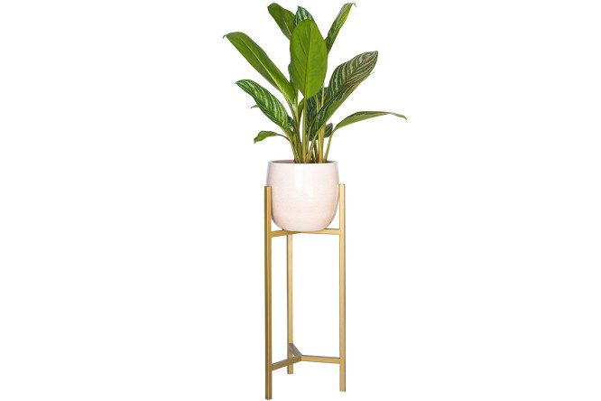 A stand for indoor plants in gold color for lovers of interiors in loft, scandi and minimalist styles! Suitable for placing a pot with a large plant on the floor. The golden color of the stand favorably emphasizes the beauty of the flower pots and indoor plants, making the decor of the room more stylish. Black plastic caps on the legs will protect the floor from scratches.