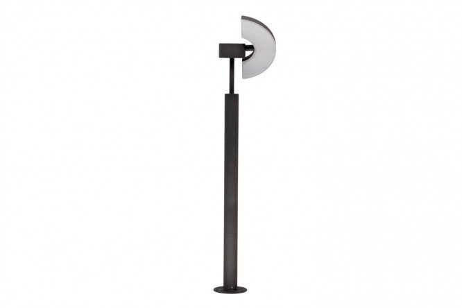 The street lamp from the Danish brand Citilux is not just an effective lighting device, but also a very expressive element of landscape design. The design feature allows you to easily change the position of the lampshade so that it illuminates as much as possible a particular corner of the garden, terrace, or patio. The white semicircular diffuser is made of polycarbonate, the metal fittings are painted black.