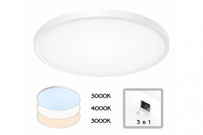 The ultra-thin BASIC overhead lamp has a minimalist design. Simple and reliable, it is ideal for a room decorated in one of the modern styles. The round body of the device is made of high quality plastic. The optical polymer diffuser provides a soft, uniform glow without flickering or pulsation. Thanks to the convenient mounting platform, the model is quickly attached to the ceiling. Light sources are LEDs built into the design with a long service life. The brightness of the radiation is adjusted (100, 50 or 10%) using a wall switch.