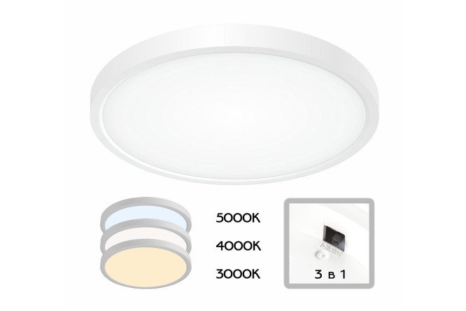 The ultra-thin BASIC overhead lamp has a minimalist design. Simple and reliable, it is ideal for a room decorated in one of the modern styles. The round body of the device is made of high quality plastic. The optical polymer diffuser provides a soft, uniform glow without flickering or pulsation. Thanks to the convenient mounting platform, the model is quickly attached to the ceiling. Light sources are LEDs built into the design with a long service life. The brightness of the radiation is adjusted (100, 50 or 10%) using a wall switch.