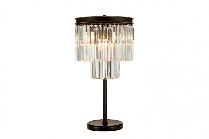 The Martin table lamp is emphatically striking and elegant. It is intended not so much for work as for decoration – there is so much beautiful sparkle and shine from the rectangular crystal pendants hung in two tiers. It is rather an additional light source that has decorative functions. The edges of the pendants refract light rays many times. The fittings look strict and laconic.