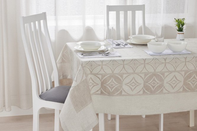 The Silvia tablecloth will make any holiday or family celebration truly unforgettable. The cotton and linen model is decorated with an elegant jacquard pattern; with such a tablecloth, the room will instantly become more comfortable and elegant.