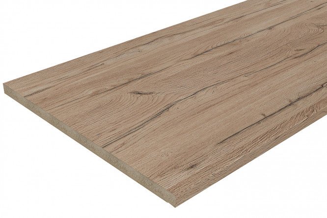 Tabletop 1U Kera oak made of postformed chipboard material in the color “Kera Oak (2075)”.