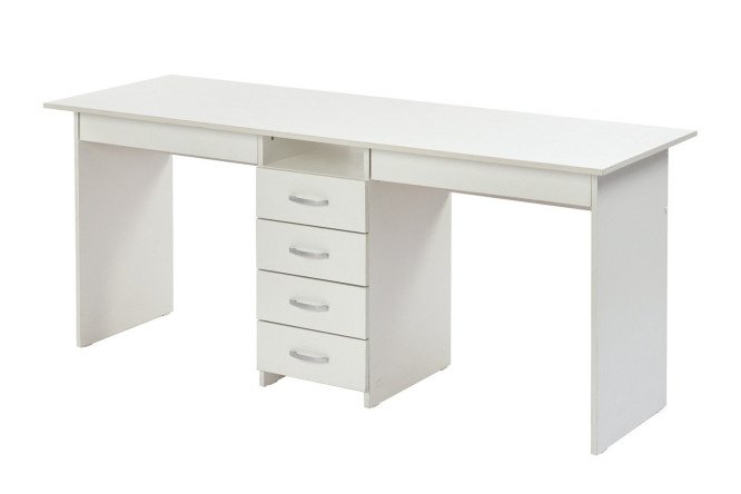 The Tandem desk is made of laminated chipboard, which is characterized by high wear resistance and meets all safety standards. The table has six drawers: four small drawers are located in the cabinet, under each tabletop there is a wide drawer.