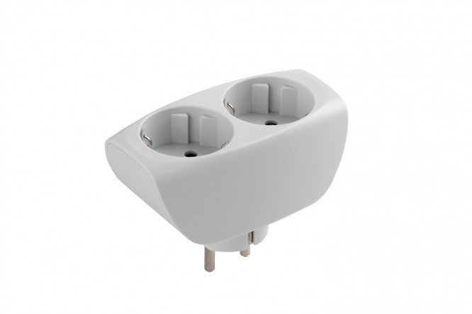 The SP-2e-W tee with grounding and curtains will help if an additional outlet is required in the room. The white body of the network splitter has a thoughtful design and sleek modern design, made of durable hard polycarbonate. Electrical plugs are securely held in two sockets. To remove or place them in a socket, you will need to make an effort, which is important in families with small children. Grounding ensures complete electrical safety of the device.