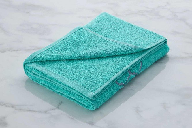 A 100% cotton towel is a classic choice for the bathroom. Cotton fiber has proven itself to be super absorbent and quick-drying, which is especially important for those who like to shower twice a day. It is pleasant to use a product with dense pile for rubbing after water procedures – such a massage improves blood circulation, warms up the muscles, while the soft terry does not irritate the skin. The perimeter of the towel is decorated with a neat border that prevents the threads from unraveling.