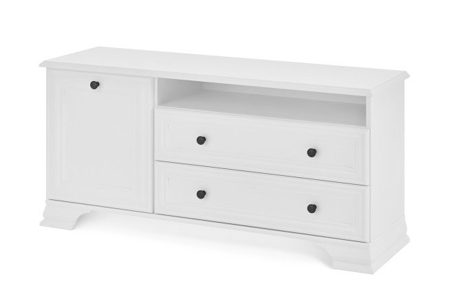 The Tiffany nightstand is an elegant yet practical piece of furniture that is suitable for the living room or bedroom. Thanks to the presence of spacious drawers, a closed compartment and a niche, the cabinet allows for efficient use of space and can be used to store clothes, bedding, boxes and containers. This TV-mounted furniture is made from durable, modern materials. The matte surface of the facades is easily cleaned from dust and dirt.