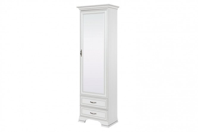 A wardrobe from the Tiffany collection is an exquisite classic that always remains stylish and fashionable. The delicate cream background emphasizes the subtle beauty of the wood texture. The facades are made of laminated MDF and are framed with elegant patinated planks. The protective and decorative coating on the metal handles is done by hand. The milled cornice and curly legs fit perfectly into the architecture of the model. The door is equipped with Polish-made GTV hinges. Drawers on ball guides open smoothly and quietly. Thanks to its aesthetic appeal and functionality, the cabinet will serve as an excellent addition to the hallway interior.