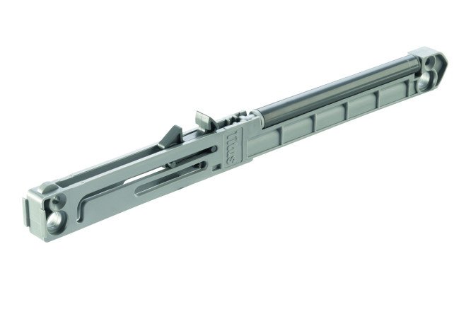 The soft closing mechanism for roller guides is suitable for drawers of any width.