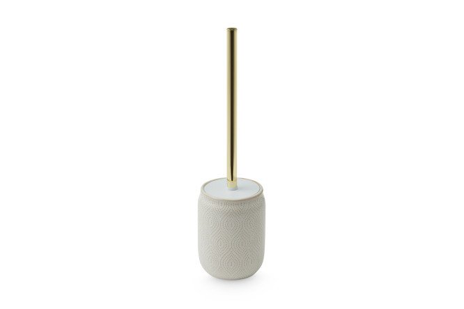 The toilet brush in the Lisbon stand is intended for purely utilitarian purposes, but looks like a work of art. The glass is made of glazed ceramic and decorated with a discreet but elegant pattern. The gold-plated steel handle harmonizes effectively with the stand. The product will make a wonderful set with other items from the collection and will allow you to stylishly decorate your interior.