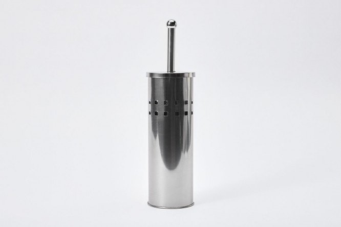 Toilet brush in a stand with a lid MITTE HV910(ST) made of stainless steel.