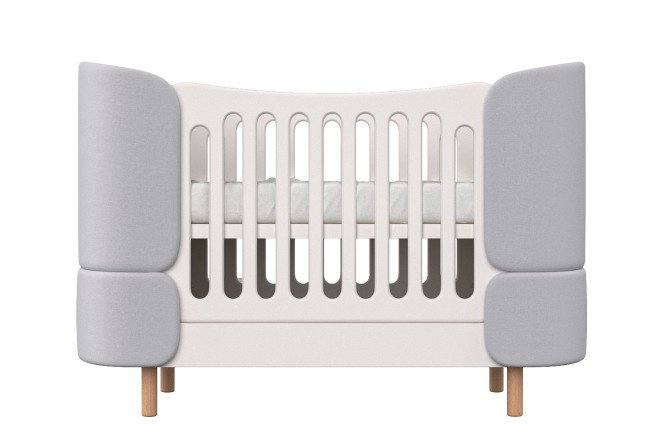 The KIDI soft transforming crib with soft textile backs has an increased size of the berth, which allows you to use the crib even in the basic configuration for up to 4 years.