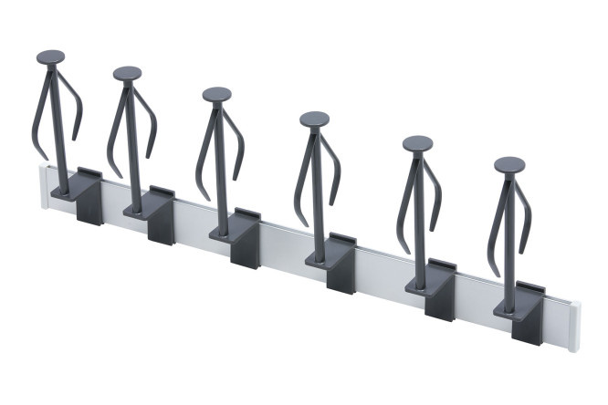The Travis cup holder is universal in installation location. The holder provides convenient storage of six glasses in a vertical position. The glasses are securely fixed to the holder, which prevents them from moving when the facade is opened. The plastic clamps of the removable holder stand apart inside the glass, which allows you to fix a glass of any diameter. Using a glass holder helps organize order and provides quick access to dishes, so you don’t have to waste time searching for the right glass on the shelf. Vertical storage prevents dust from accumulating inside the glasses and allows you to keep them clean. The holder is made of high quality materials, which ensures reliability and long service life. It is recommended to install several holders on top of each other to organize functional storage.