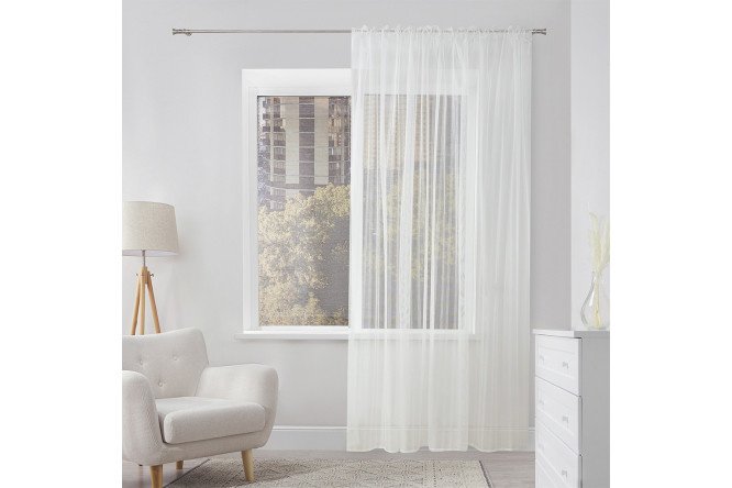 Ribbon tulle is made of light and airy polyester fabric and can be used either individually or in combination with heavy curtains. Thanks to the special structure of the fabric, the product allows daylight to pass through, somewhat dimming its brightness and creating a feeling of coolness and freshness in the room. The product is ideal for use as summer curtains in an apartment or country house. The tape allows you to quickly and effortlessly secure the tulle to the cornice. By adding thick, light-proof curtains, you can create an elegant set that will fit perfectly into the interior of any room.