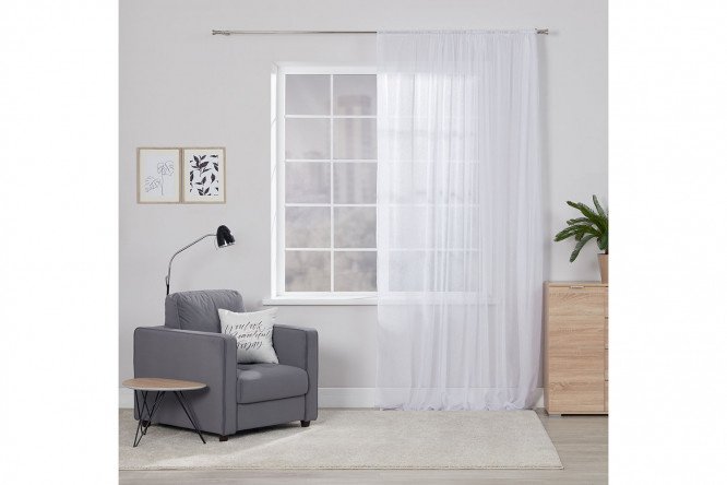 Gia’s delicate translucent polyester mesh tulle is ideal for windows on the north or shaded side of the house. It transmits sunlight almost without loss and will not become a barrier to fresh air. The lightweight fabric is decorated with elegant touches that give the product a unique charm. The tape allows you to effectively drape the material – a window with such tulle will take on a spectacular finished look, and the room will become homely. The product can be washed at temperatures up to 30 degrees.