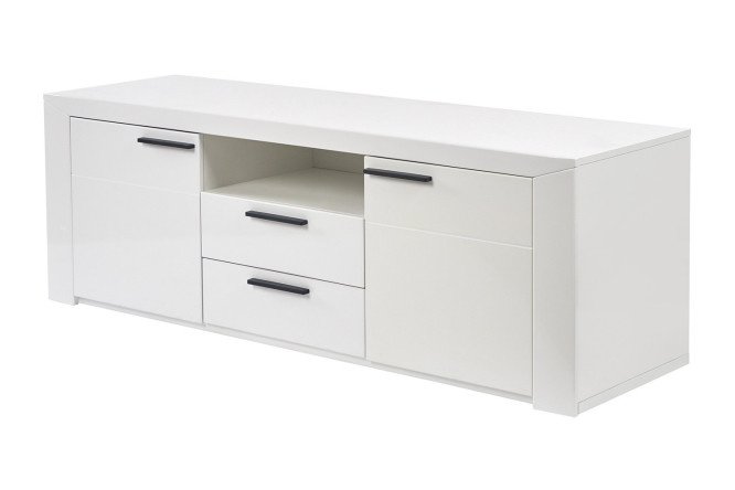 TV stand ESTA Lacoste made of laminated chipboard, MDF with PVC coating in white gloss color.