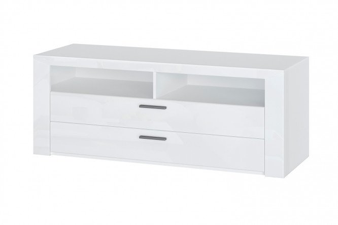 TV stand ESTA Lacoste made of laminated chipboard, MDF with PVC coating in white gloss color.