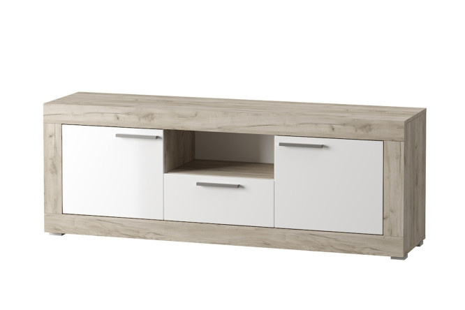 The Martin TV stand will allow you to stylishly and conveniently arrange an entertainment area in your living room or office. The spacious lid is suitable for installing a large-screen TV, and in the full extension drawer and in the compartments behind the hinged doors you can store discs, components and accessories, small household appliances and documents. The niche is convenient for installing equipment or decorative items.