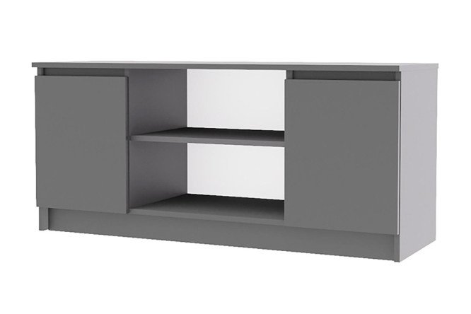 The Mori TV stand, made in a laconic style, is an excellent choice for a modern interior. The model with a plain matte finish is equipped with two compartments behind hinged doors without handles and two open niches for equipment, books, and decorative items. Conveniently, there is no central rear wall, so connecting equipment on open shelves will not be difficult.