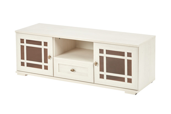 The Sherlock TV stand will be the finishing touch in rooms decorated in country or Provence styles. The model’s warm color palette and original design allow it to be organically placed in a cozy bedroom or spacious living room. The product is made of high-quality materials that are durable and environmentally friendly. The ergonomic design is thought out to the smallest detail: it is convenient to store remote controls or audio CDs on the open shelf, and personal items on the closed shelf. Two other spacious compartments are perfect for speakers and other devices. Laconic fittings and original carvings on the doors make the Sherlock cabinet an interesting decorative element. Stable legs prevent damage to the floor covering.