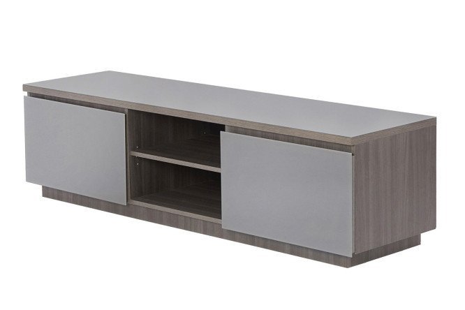 A TV stand from the Solda collection will highlight the sophistication of a minimalist interior. Strict geometric shapes and discreet design combine perfectly with the high functionality of the module. The cabinet is designed for the most convenient placement of media equipment. The product is equipped with two drawers on the sides and open shelves in the center. The model is made of laminated chipboard – a high-quality material that is resistant to mechanical damage. Glass is fixed on the tabletop, giving the product originality.