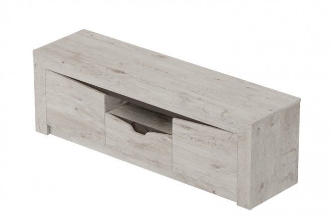 The Sorento cabinet is an element from the furniture collection for arranging a TV area, around which the entire composition can be built. The surface of the module allows you to place a large diagonal TV. The central part is occupied by a drawer with a figuratively carved facade and a niche for video equipment or a game console. Two closed compartments with hinged doors are designed to store related accessories, a collection of CDs, and magazines. The doors are equipped with a push-to-open opening mechanism.