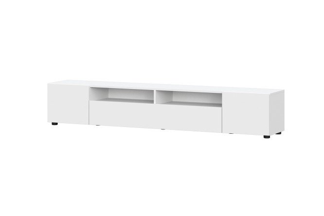 The Tokyo TV stand with a striking white textured finish is a stylish model, the lid of which will accommodate a large diagonal TV, speakers, and other television and audio equipment. There are also two open niches under the lid for equipment, which are also perfect for interior decor items.