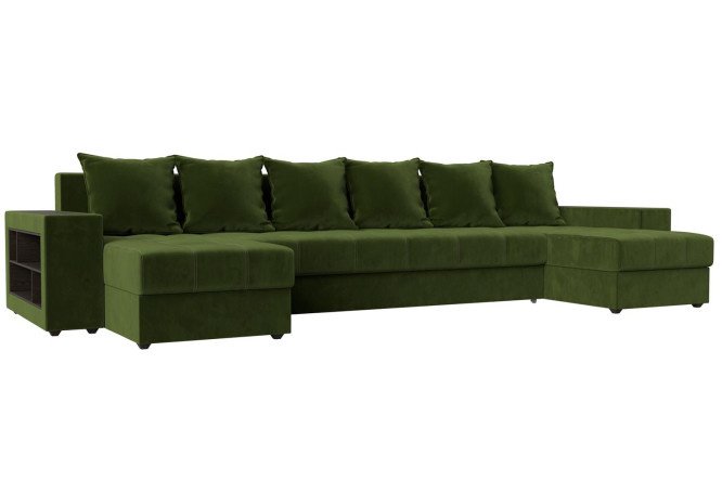 The U-shaped sofa bed Emirate is both a spacious seating area for a large company and a spacious storage system: in addition to two linen drawers, the sofa is equipped with two shelves built into the wide armrest. The design of the two-tone model attracts a stylish combination of shades and textures. This model is only available in those upholstery options that are presented in our range.
