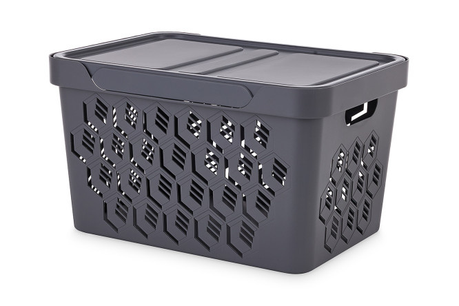 A matte, stylish Deluxe box with a geometric pattern and perforations on a large 18-liter body is ideal for storing toys, documents, textiles, large art supplies and much more. The lid of the box can be turned over and it will turn into a convenient shelf for storing small items. The Deluxe drawer with comfortable handles is available in four trendy colors.