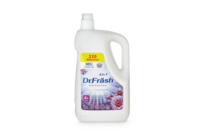 Dr.FRASH Universal 4 in 1 washing gel is an ideal washing solution that allows you to achieve impeccably clean and fresh laundry. The 5.5 liter capacity provides up to 220 washes, making it an economical choice for family use. A special active formula penetrates deep into fabric fibers, effectively removing stubborn dirt, grease and unpleasant odors. Thanks to its powerful cleaning properties, the gel shows excellent results even at low temperatures, maintaining the richness of colors and preventing the appearance of a gray tint on white laundry. Dr.FRASH Universal 4 in 1 contains safe and non-irritating ingredients, making it an ideal choice for the whole family, suitable for both white and colored fabrics. It effectively deals with the most difficult stains, while protecting clothes during washing. In addition, the gel contains a conditioner, which provides additional softness and a pleasant aroma of freshness. It dissolves well in water and begins to act from the first seconds of washing, rinses well and does not have a harmful effect on the skin. It is important to note that the gel does not contain chlorine and other aggressive substances, and also prevents the formation of scale in the heating element of the washing machine, acting already at a water temperature of 20°C, which saves energy.
