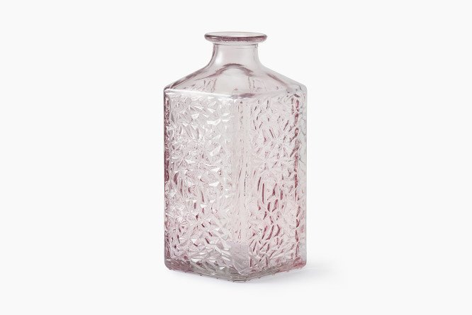 This unusually shaped vase is made of glass with a relief surface. Even without flowers, this vase will do an excellent job as a bright accent in interior decor. Presented in three versions.