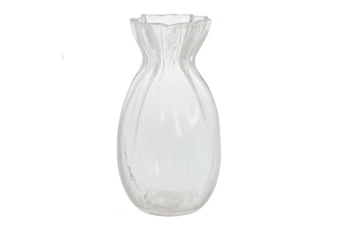 This glass vase of an original shape will be a wonderful addition to the interior; its design and transparency will add sophistication and charm. Use it to display fresh flowers or simply as a decorative element and it will attract admiring glances. Neck diameter: 3.5 cm.