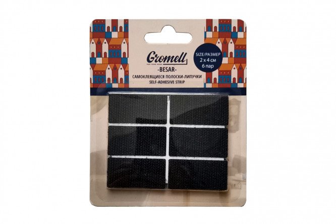 Besar Velcro strips made of polyester material in black color, set of 6 pcs.