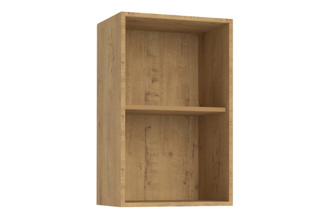 The frame of the wall cabinet is made of chipboard material in the color “oak gold craft”.