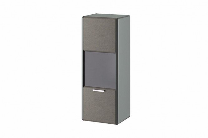 The wall cabinet from the Naomi collection is a piece of furniture that saves space. Thanks to its design, the wall cabinet visually increases the height of the room. Noble gray color will be a successful addition to any color scheme in interior design. Dark glass mounted in the middle part protects the contents of the cabinet from dust and sunlight. At the same time, the necessary thing can be easily found without opening the door. Modern lightweight and durable materials, reliable fittings and perfectly matched elements guarantee that this furniture will last for many years.