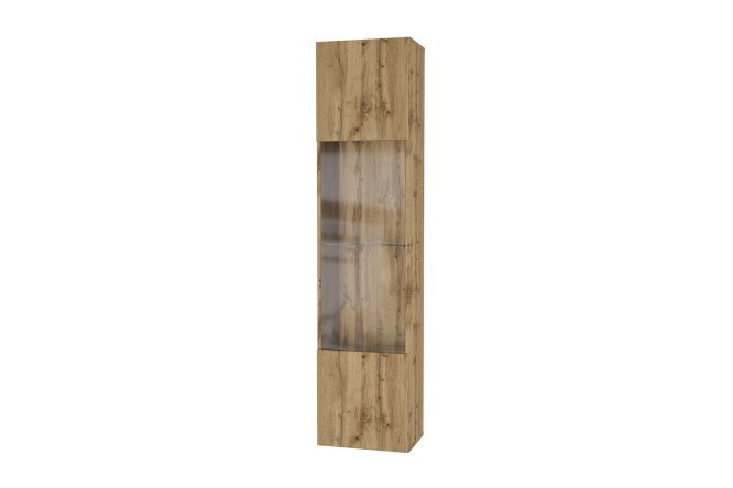 Wall cabinet Point made of laminated chipboard, MDF, glass in Wotan oak color.