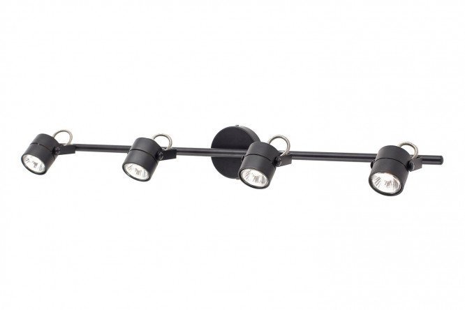 The Ring lamp with four small, spotlight-shaped lampshades on a metal rod will successfully complement interiors in the Art Nouveau or high-tech style. The metal structure is durable, does not contain breakable elements and is resistant to mechanical damage. The lamp is securely mounted on the ceiling or wall using a “bar” type mount. This solution is well suited for rooms with low ceilings, as well as when additional lighting is needed for a specific area in the room.
