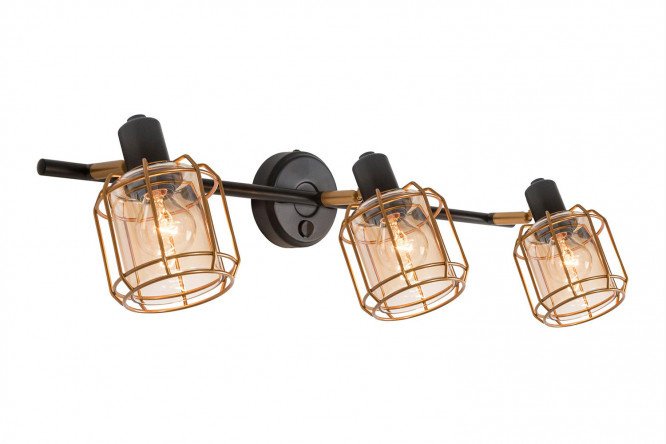 The Tavern lamp will support the figurative structure of the interior, designed in the loft or industrial style. The design of the wall-ceiling lamp has a spot function, which allows you to vary the direction and angle of the shades. The cylindrical diffusers made of beige glass are enclosed in a lattice frame that performs a protective and decorative function. Bronze-painted elements contrast effectively with the black base.