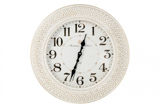In addition to fulfilling its direct purpose, the Tango wall clock will serve as a spectacular decorative detail in an interior with retro style elements. The round body is carved from solid wood, embossed with floral motifs accented with gold. The large Arabic numerals and minute track stand out against the light-colored crackle-effect dial. The smooth and silent movement of the second hand is ensured by a quartz floating mechanism. The glass insert prevents dust from penetrating inside.